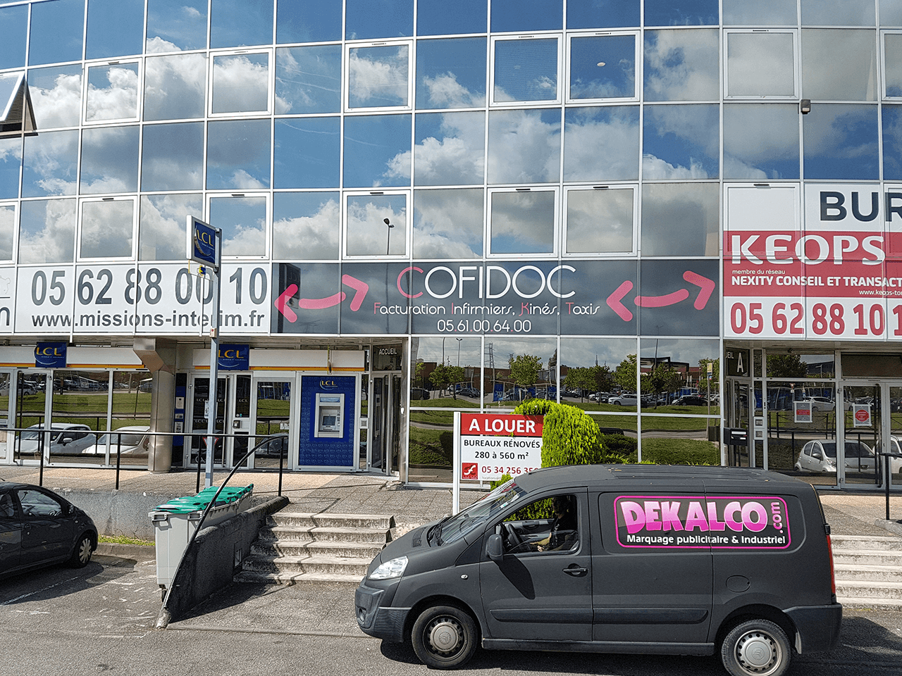 À Toulouse, Dekalco conçoit, découpe et pose des films dépolis sur mesure pour les bureaux, vitrines commerciales et espaces nécessitant une protection visuelle sans perte de clarté.